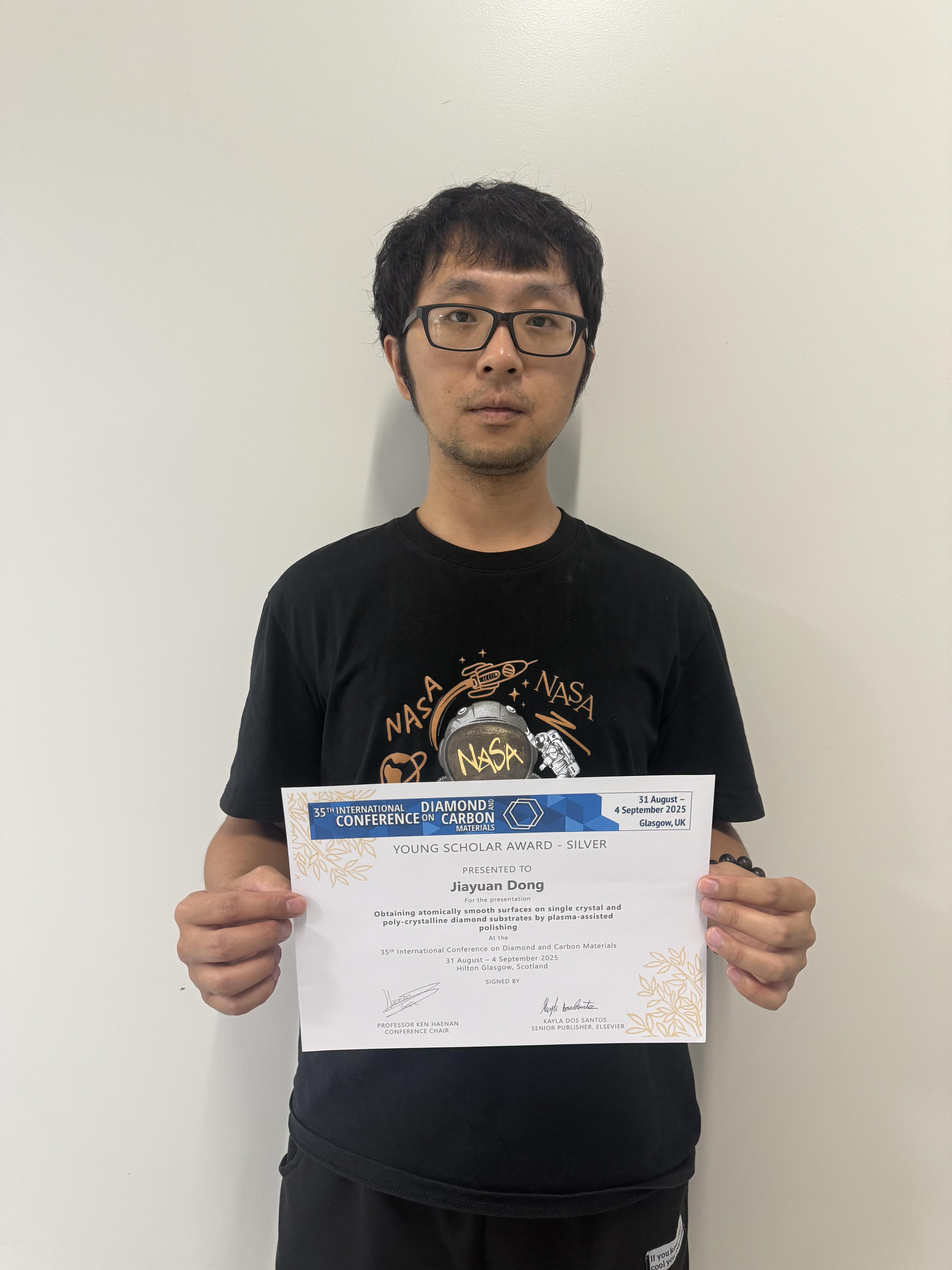 - 8月31日~9月4日にGlasgow, Scotlandで開催された35th International Conference on Diamond and Carbon Materialsにて、当研究室の董佳遠君(D3)がYoung Scholar Award - Silver賞を受賞しました!