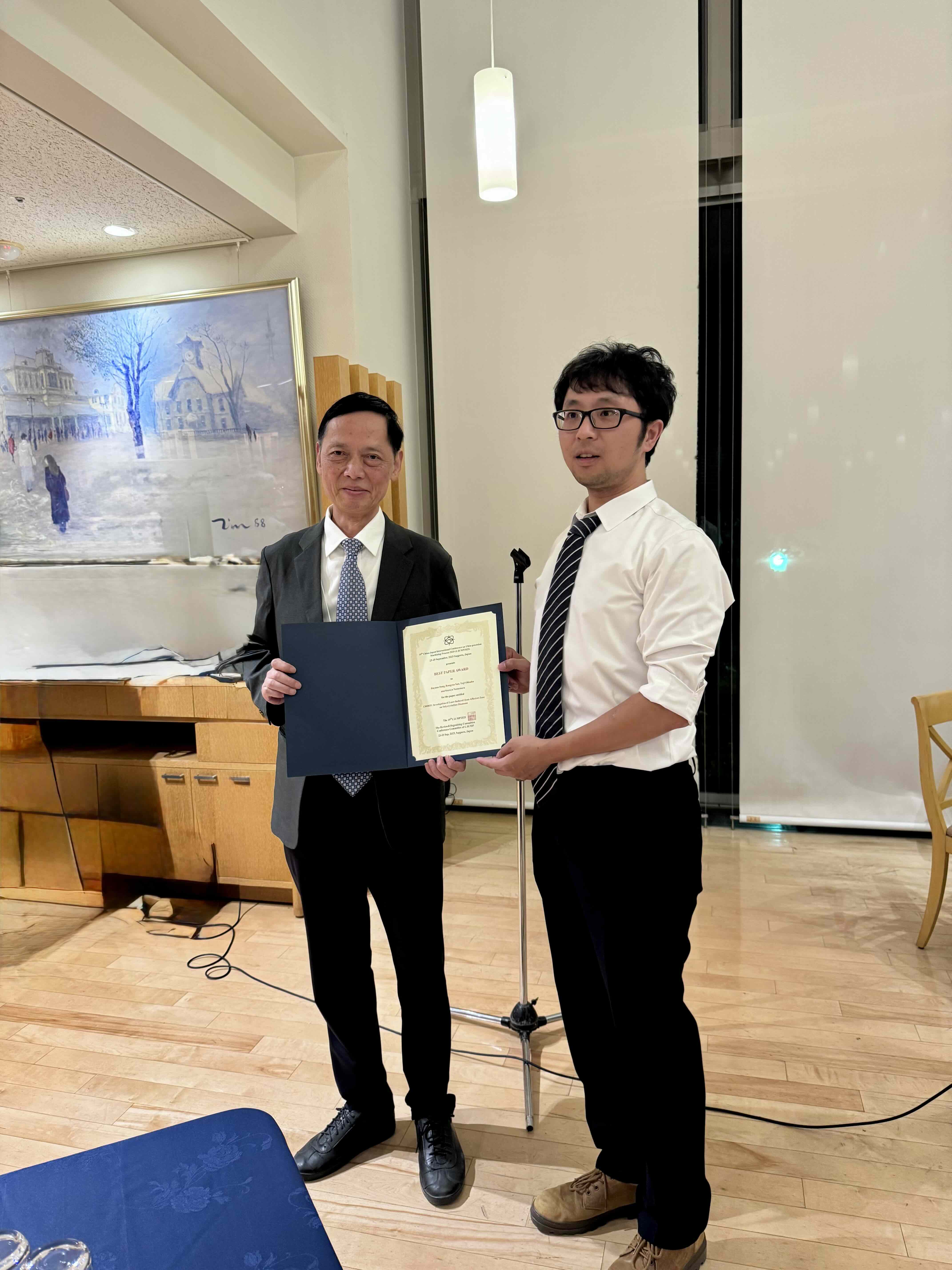 9月23日~25日に札幌で開催されたThe 19th China-Japan International Conference on Ultra-Precision Machining Process (CJUMP2025) にて、当研究室の董佳遠君(D3)、大西雄也君(D1)が受賞しました。