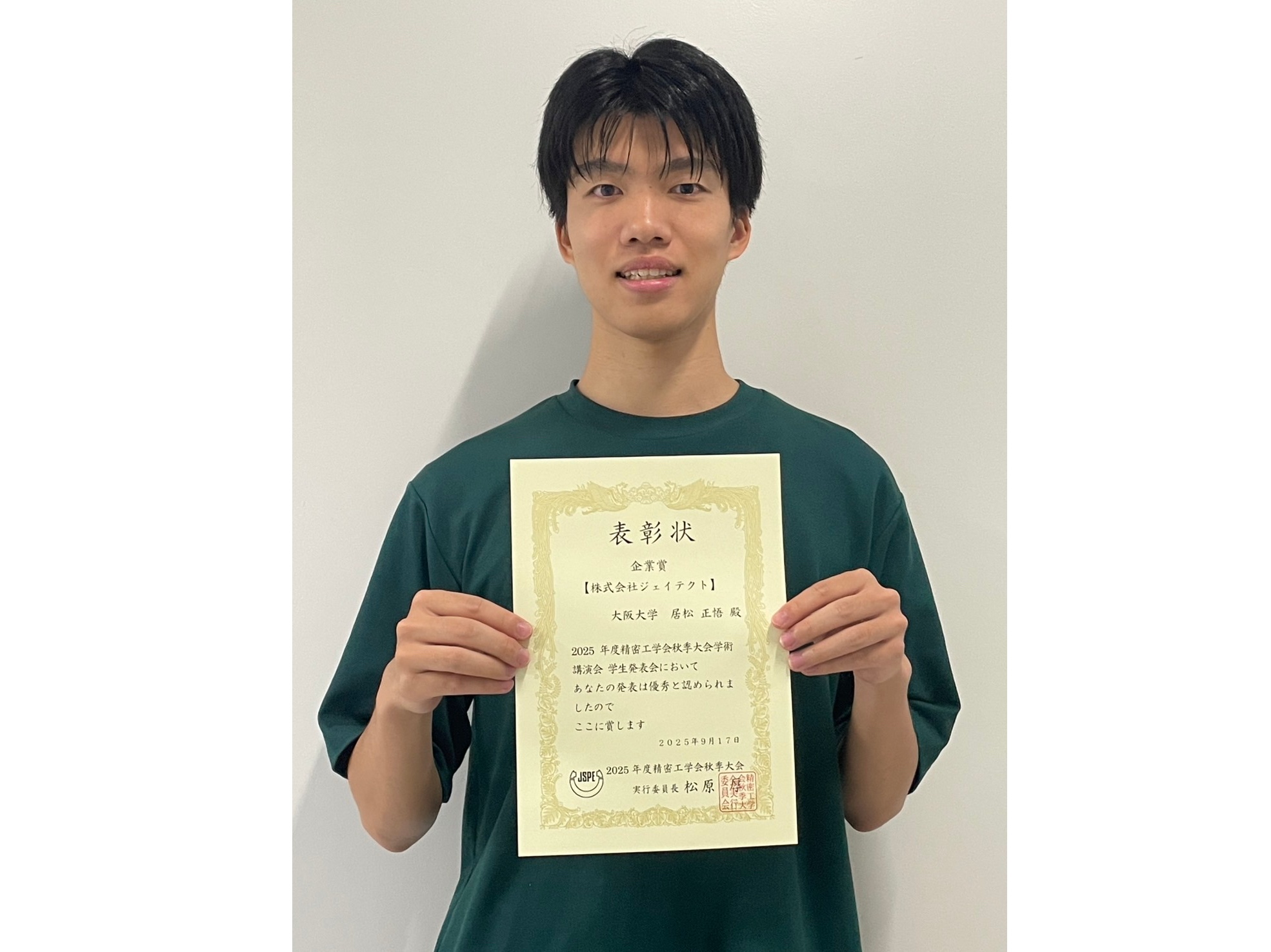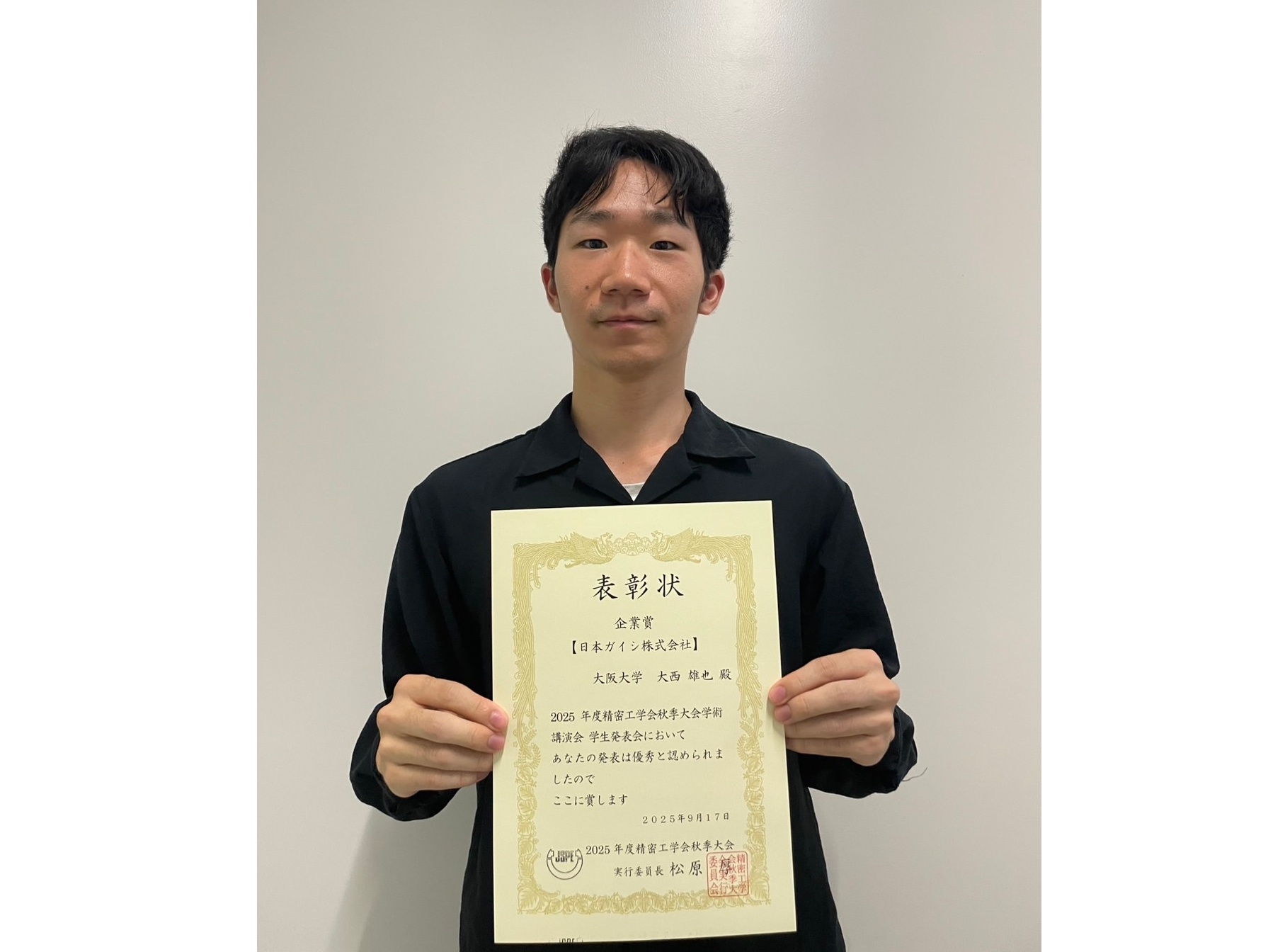 9月17日~19日に京都大学吉田キャンパスで開催された2025年度精密工学会秋季大会学術講演会にて、当研究室の大西雄也君(D1)、居松正悟君(B4)が受賞しました。